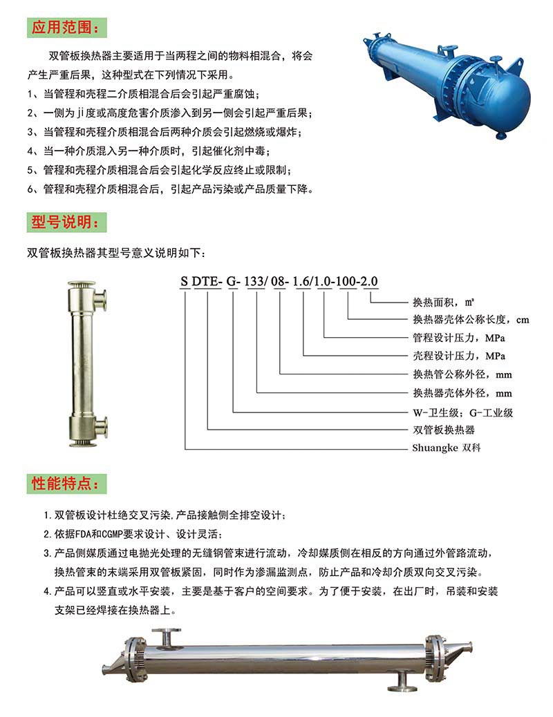 換熱器在各個領(lǐng)域應(yīng)用十分廣泛,是不可缺少的工藝設(shè)備之一,但在實際操作中換熱器的換熱管與管板連接處容易發(fā)生泄漏,使管程物料和殼程物料有少許的混合。在有些場合,少許的泄漏是允許的;而有些場合管程物料和殼程物料想混后會產(chǎn)生嚴(yán)重的后果。雙管板換熱器結(jié)構(gòu)由于具有能確保管殼程介質(zhì)完全分隔開、不能互相串通,無論管殼程哪段介質(zhì)泄漏即可迅速檢測出等優(yōu)點,越來越受到介質(zhì)有高度危害且管殼程介質(zhì)嚴(yán)格不能互相混合的用戶的歡迎。