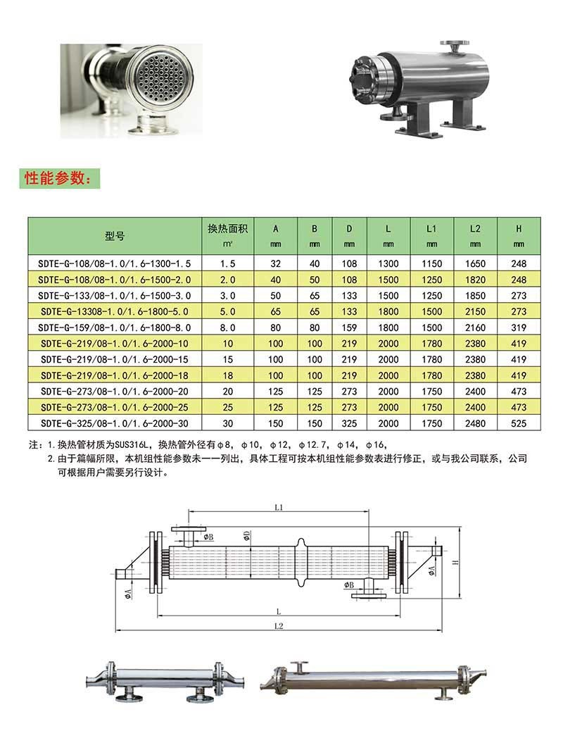1、 換熱管采用316L無縫鋼管。